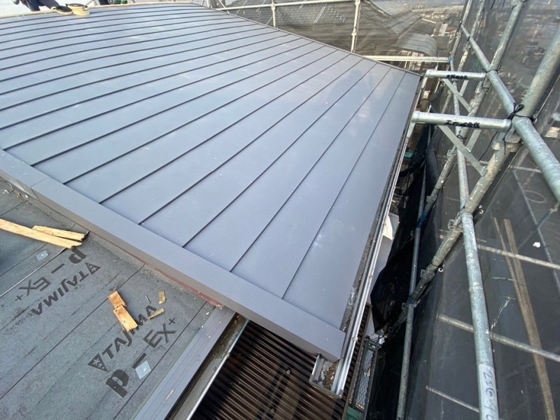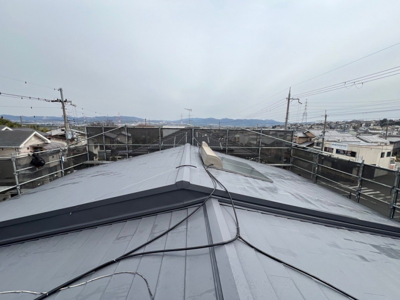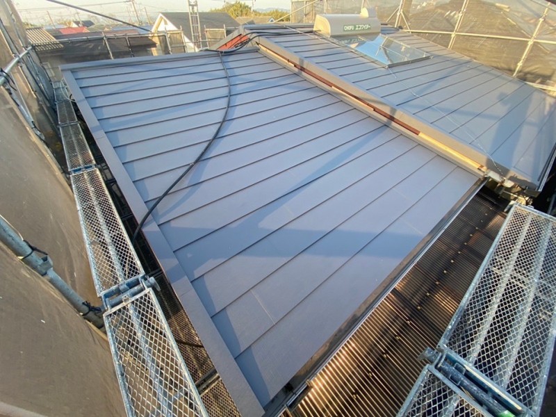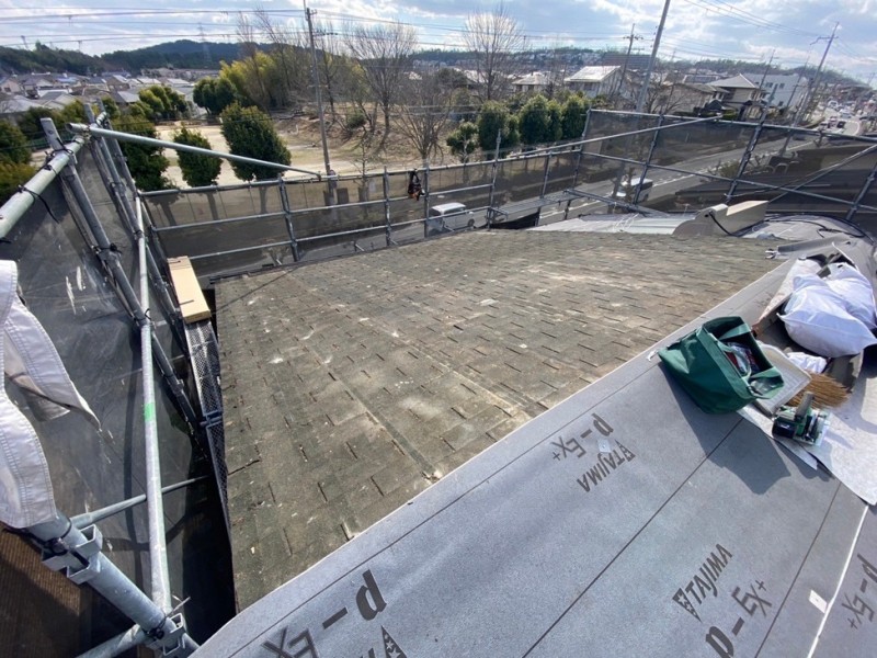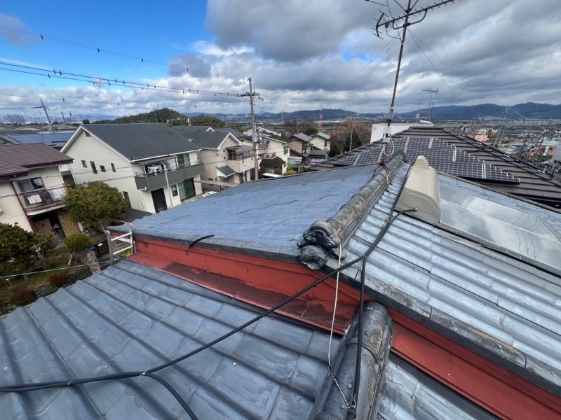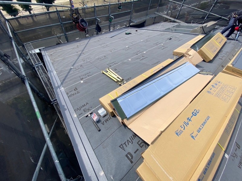 京都府京田辺市にて、かわらU屋根撤去後シングル屋根にカバー工法でシルキーG2ガルバ断熱ルーフを施工しました。