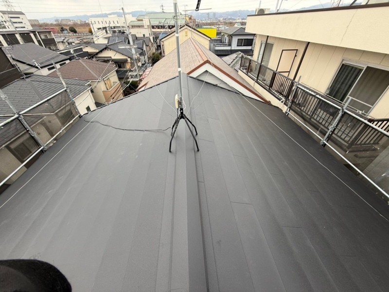 大阪府枚方市にて、雨漏り修理の為 カラーベスト屋根をガルバ断熱ルーフシルキーG2で、窯業サイディング外壁をガルバサイディング伸璧でカバー工法しました。 2026年1月30日(金) 07:58 | カテゴリー:施工実績