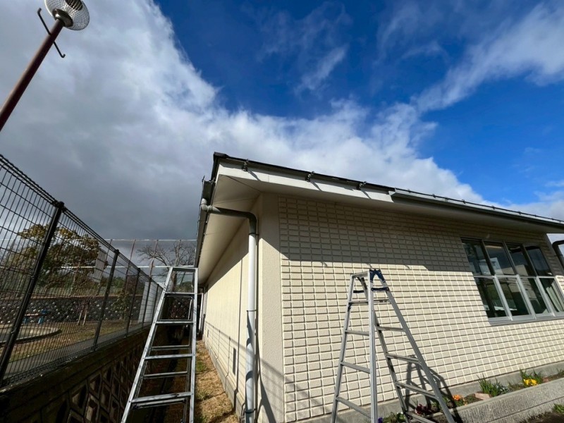 大阪府枚方市にて、図書館の雨どいが破損していたので一部取替工事をしました。
