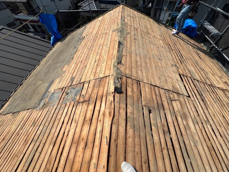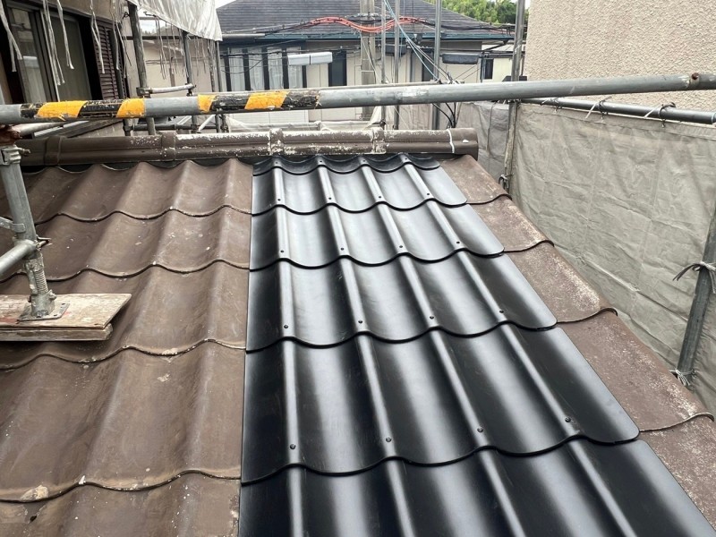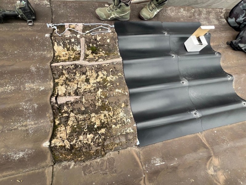大阪府枚方市にて、シャッターボックスから雨漏りしているので、ガルバリウム鋼板で加工し屋根カバー工法工事をしました。